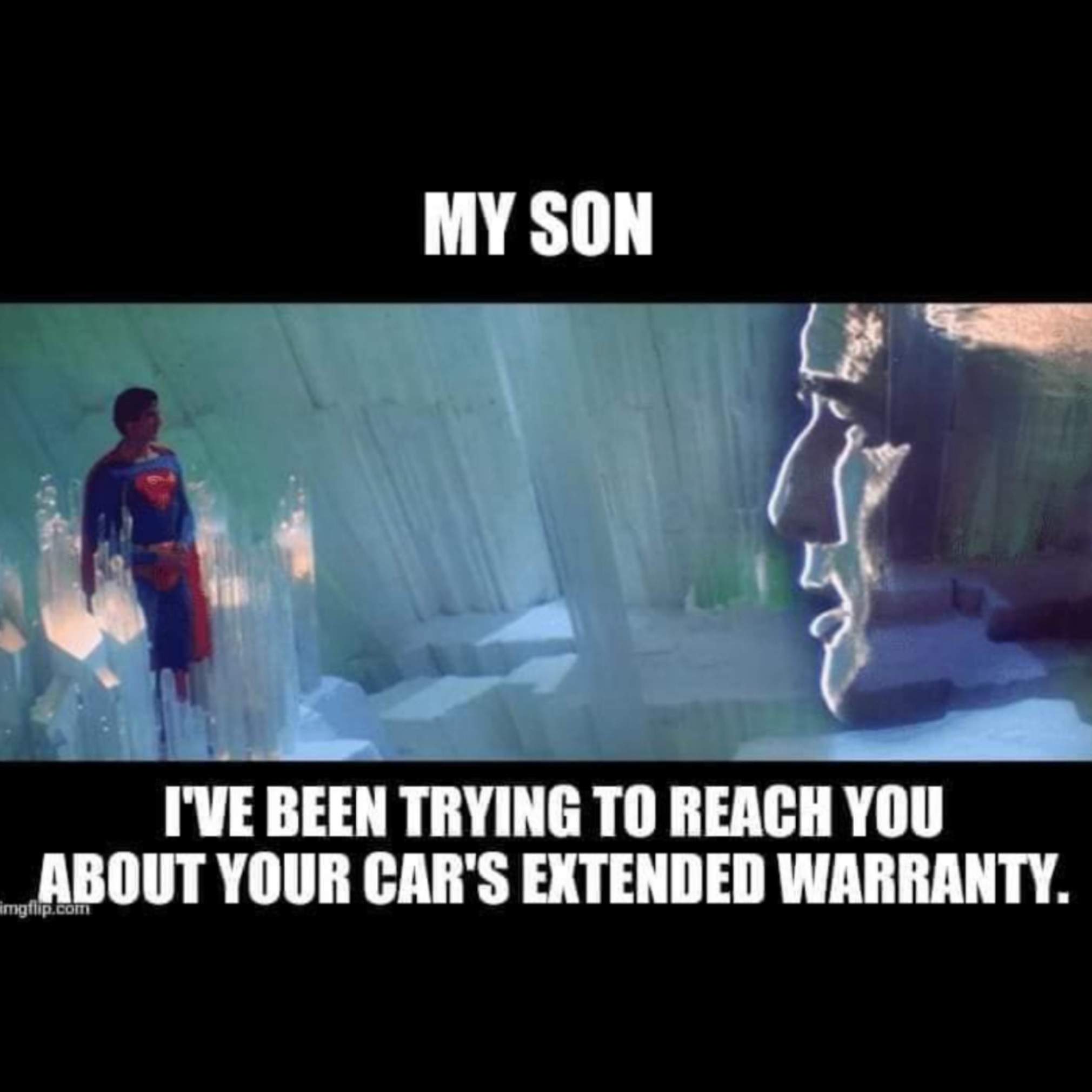 Super Museum On Twitter Those Car Extended Warranty Calls Are Coming From Every Phone Number On Every Phone Can T Even Escape Them In The Fortress Of Solitude Superman Memes Carextendedwarranty Spamcalls Https T Co 384iamptwg